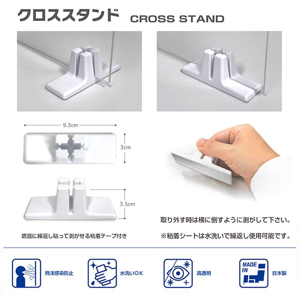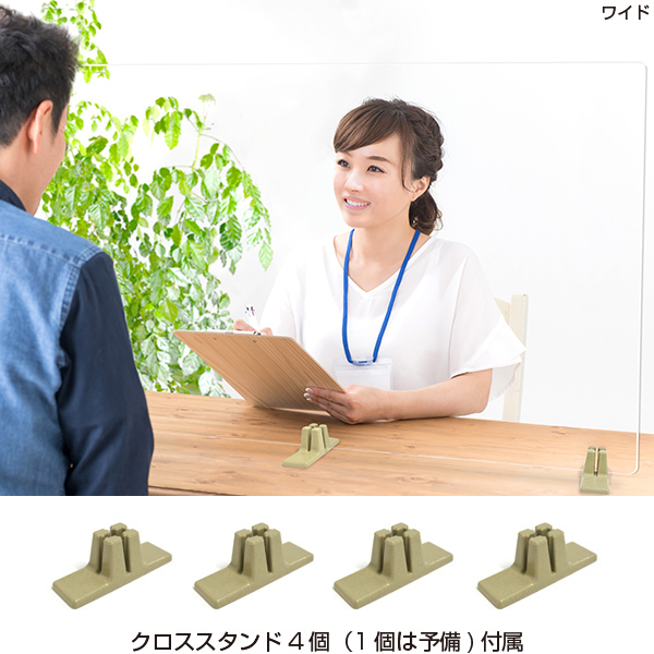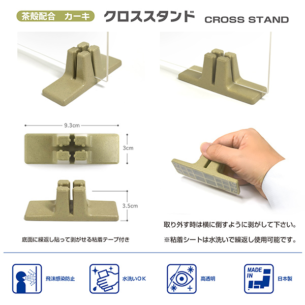 ○自社工場 日本製○ウイルス・飛沫防止対策品○超低反射透明アクリル板4mm厚○茶殻配合ABS製スタンド4個付属