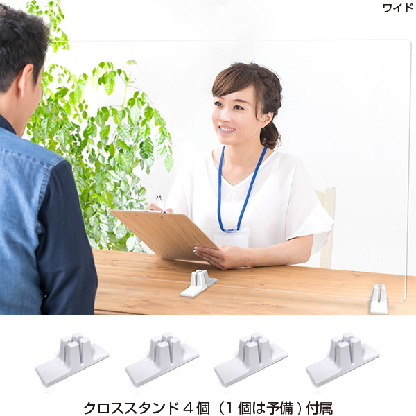 ○自社工場 日本製○ウイルス・飛沫防止対策品○超低反射透明アクリル板4mm厚○ABS製スタンド4個付属