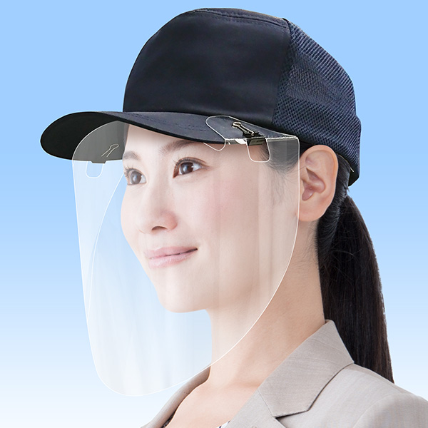 ○帽子のツバに簡単取付け可能です。○シールド:透明PET/0.188mm ○サイズ:フリー