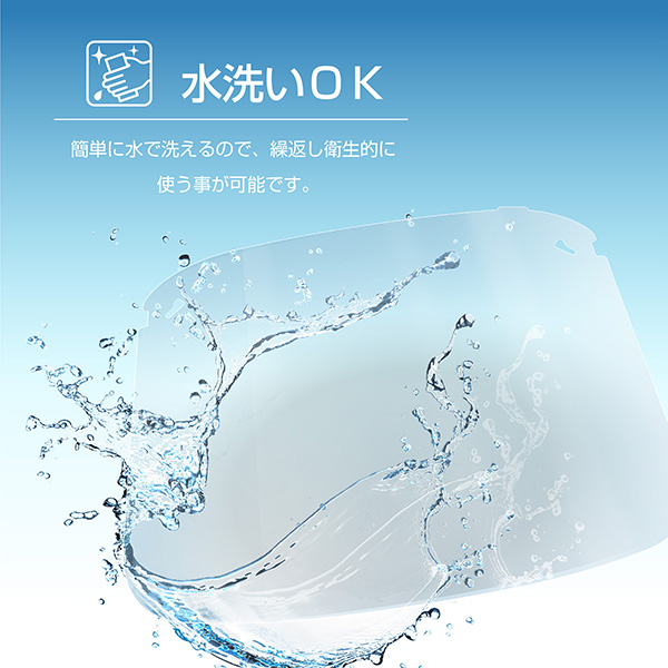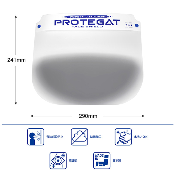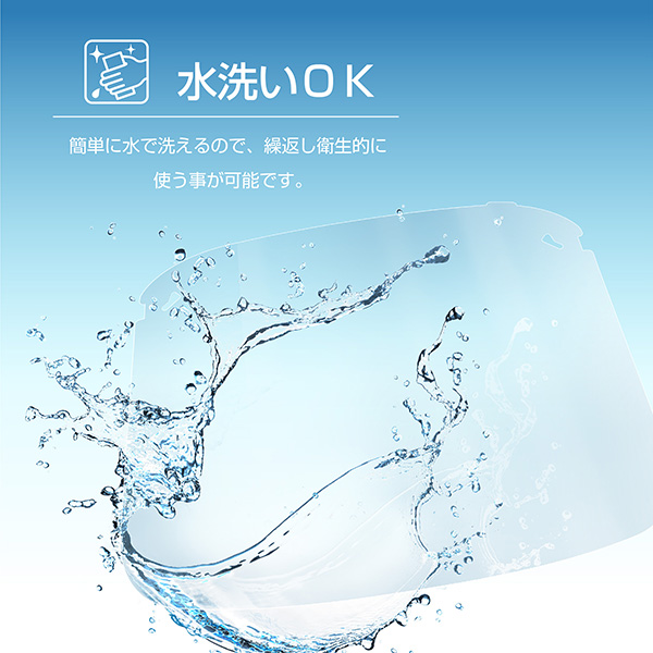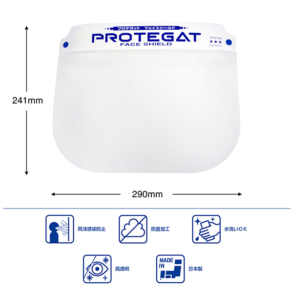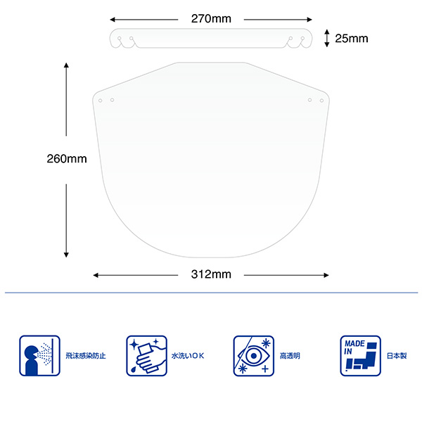 ○自社工場 日本製○ウイルス・飛沫防止対策品○高透明・薄型軽量設計○フェイスシールドは片面防曇仕様○水洗いで繰返し使用可能