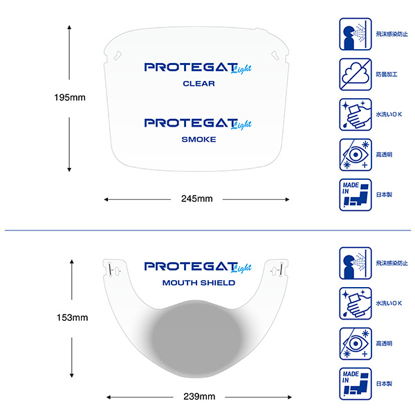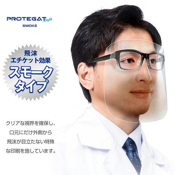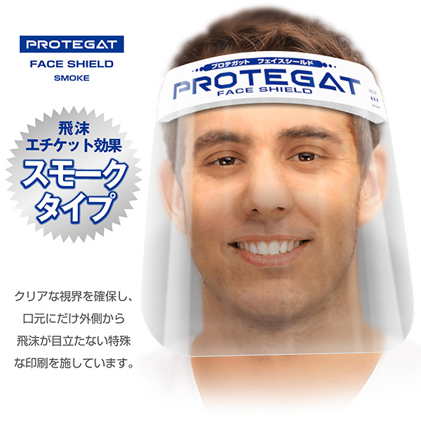 ○スモークは口元に外側から飛沫が目立たない特殊な印刷を施しています。○シールド:透明PET/0.188mm