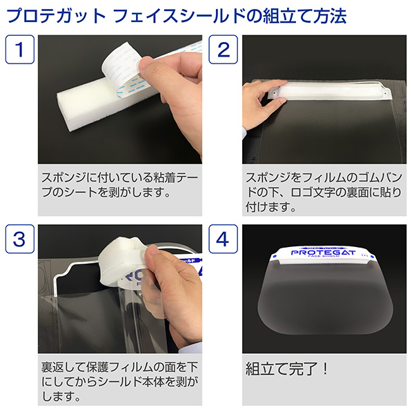 ○フェイスシールドの縁は厚さが薄いため、皮膚を傷つける等けがをするおそれがあります。注意してご使用ください。